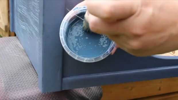 • Cuando el barniz está seco, usar una pintura azul clara con una técnica llamada cepillado seco.