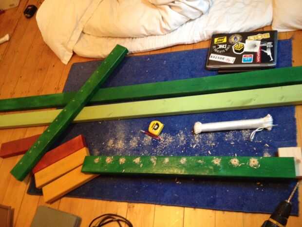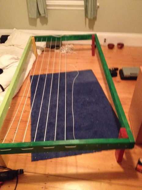 Después de la pintura, I había perforado agujeros cada tres pulgadas a lo largo de cada sección de la madera, había montado el marco externo primero y luego une las piernas. Si quieres probar esto y no lo han hecho mucho para trabajar la madera, recuerde perfore previamente los orificios para los tornillos primero!