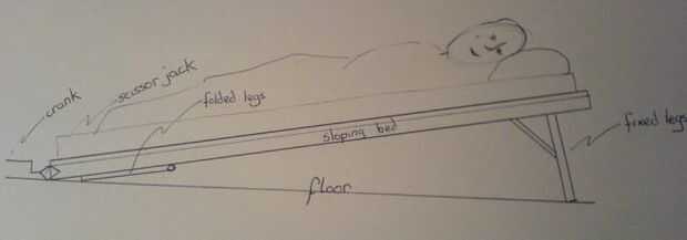 Los doctores recomiendan tener la cabecera de su cama planteada por 6-8"(15-20cm) por lo que yo he ideado una cama que pendientes... así que puedo dormir con el estómago inferior de mi cabeza. Confianza en mí, muy rápidamente han utilizado a él y a menudo no puede recordar si la cama es pendiente o plano... hasta que de vez en cuando despierta colgando en la parte inferior.
