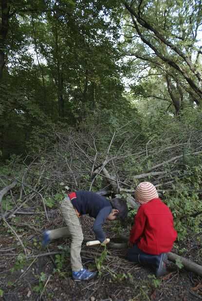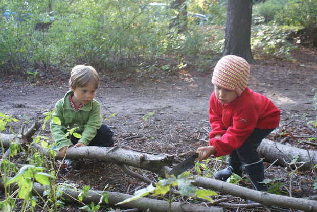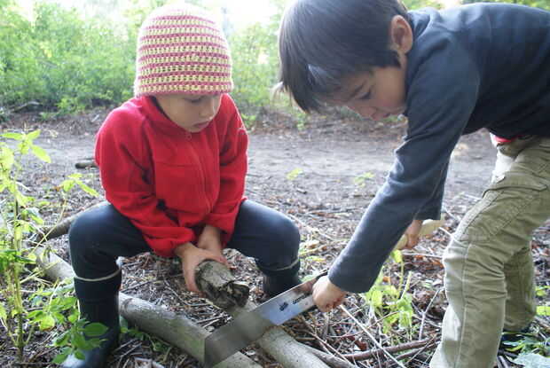 Dependiendo de la edad y habilidad de los niños, que lo hagan algunos de la sierra. Os recomiendo una sierra japonesa para esto. Es fuerte y fácil de manejar incluso para los niños (porque corta en la carrera de extracción que es fácil para ellos hacerlo). Asegúrese de observar a los chicos cortaron y cortarse las ramas más grandes! Si la corteza está floja sacar antes de su inicio. Si no dejar esto para más adelante, cuando sabes que de piezas realmente utilizar.