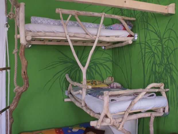 Una buena manera de hacer la barandilla es encontrar ramas de forma irregular, poner un par de ellos juntos y normalmente hace el trabajo. Puede involucrar a los niños en este paso, que es la parte donde da la cama de su mirada...