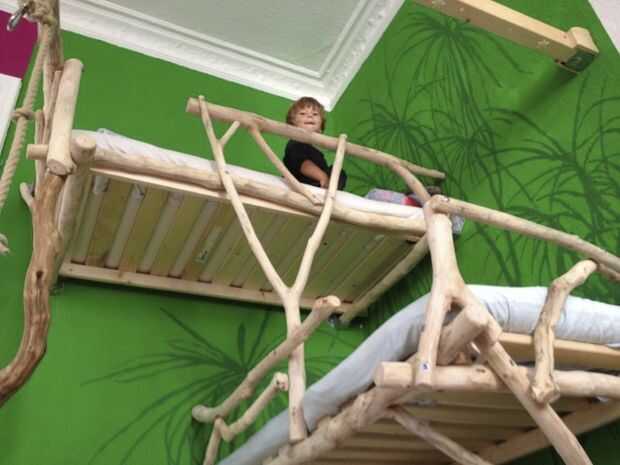 Cuando esté la barandilla que los niños prueba la estabilidad de la cama mientras que usted está viendo. Dejarlos jugar, encontrar maneras de subir en la cama, ver si hay manchas en la barandilla que son demasiado amplias y si es necesario añade ramas cerrar boquetes o que sea más fácil llegar a la cama. Mi experiencia es que los niños pueden subir mucho mejor de lo que cabría esperar.