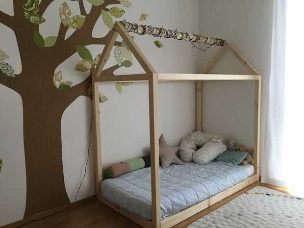 En primer lugar, una búsqueda en google rápido para "cama en forma de casa" le dará suficiente prueba de que la idea no viene de mí. De hecho, miré a muchos cuadros de otras camas para averiguar cómo quería construir mina. Hay muchos disponibles para la venta, pero yo quería construirlo yo mismo.