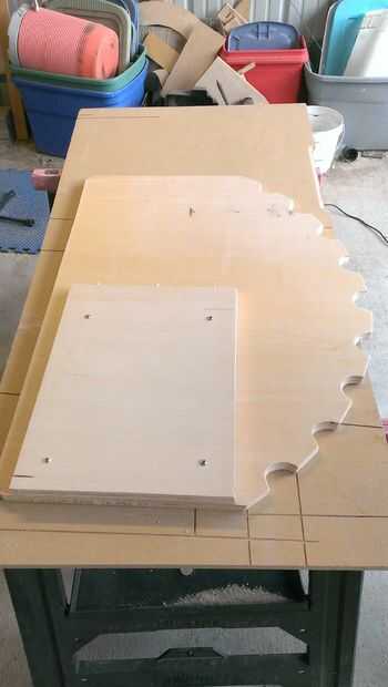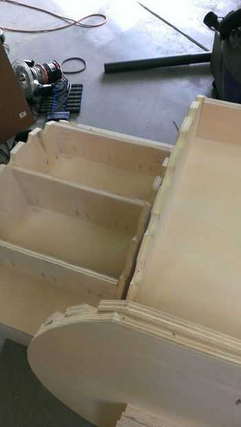Utilizar cola para madera entre todas las juntas, luego pega los tapones de madera para ocultar los agujeros de bolsada. Luego utiliza una herramienta dremel para cortar los tapones al ras y lijar todo. He utilizado masilla de madera para rellenar huecos en la madera contrachapada.