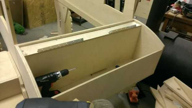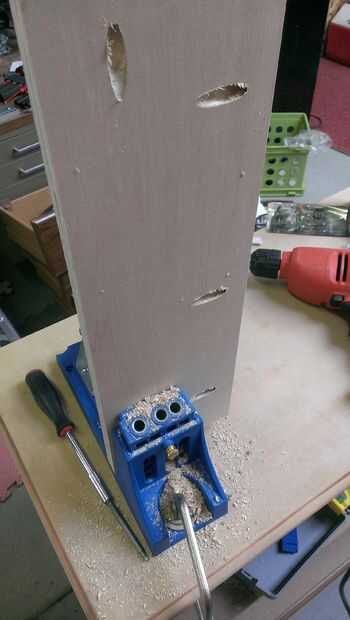 Usé un Kreg jig para la perforación de los agujeros de bolsada durante todo el proyecto. Luego compré tapones bolsillo plástico para cubrirlos para que puedo volver a ellos para mover la cama en el futuro.