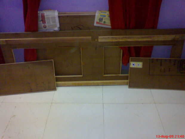 Wow, que es un título muy largo!Hace unos años diseñado y construido este cabecero para mi esposa (novios en el momento) cuando vivimos separados.  Se enchufa en cualquier tomacorriente de pared estándar 1 e incluye 2 interruptores de luz para las lá