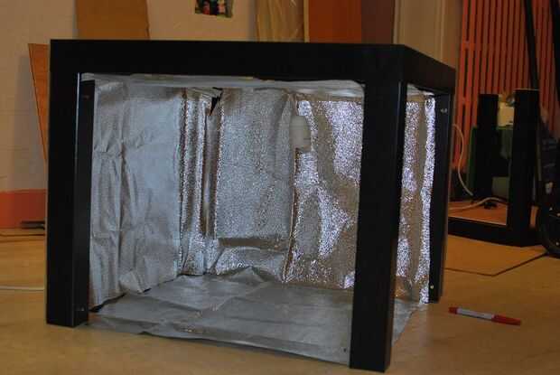 He utilizado reflexiva hoja plástico comprada en una tienda de jardinería interior y stappled que dentro de las tablas.