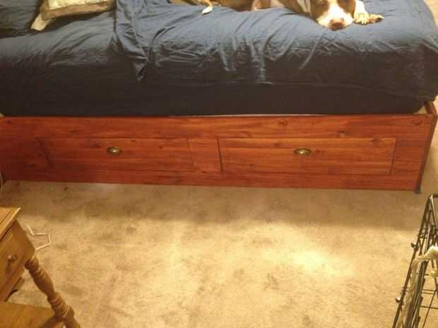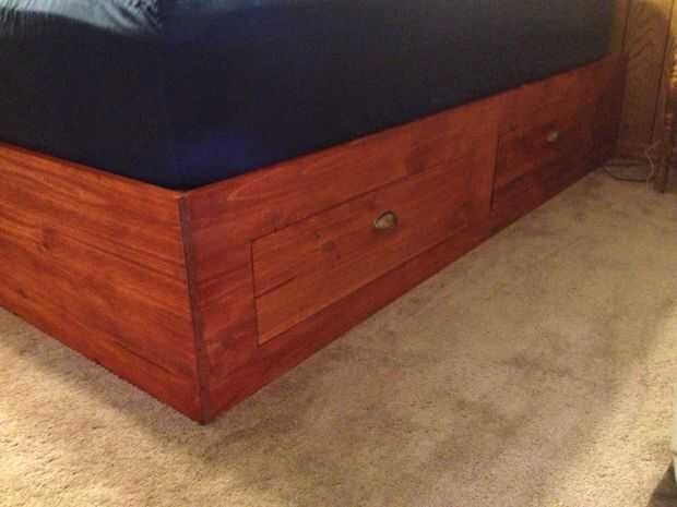 esto es un instructable posteriores a la construcción de un marco de cama construí hace un tiempo. Sorry por no ser más informativo, pero esto debería darte una idea de cómo se colocan juntos. Esto era sobre $250, proyecto de fin de semana (si usted factor en espera de mancha secar). Materiales necesarios: 2 x 4 (yo usé unos 16 8 pies) 1 "x 16" x 8 "pino/roble/lo que sea terminar le lujo (X 3) 1" x 6" x 8' mismo acabado madera que el anterior. (X4) Estos son para los lados del cajón y cajón soporte (2) hojas de 4 x 8 2 1/2 drywall tornillos de nuevo cajón maneja tinta para madera herramientas necesitada/recomendadas: habilidad/circular Sierra Sierra caladora clavadora taladro lijadora cepillo de pintura