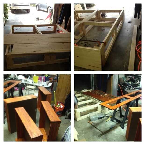 Ahora puede arena y manchas de todos los tableros de acabado a la mancha de su elección. También es un buen momento para separar las dos secciones del marco y colóquelos en su lugar.