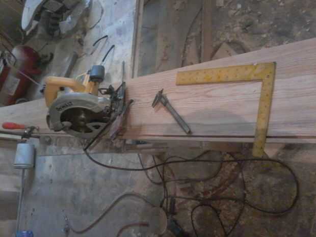 en este paso usar mi sierra circular para hacer como un espacio de 6mm para instalar la madera contrachapada.
