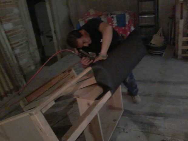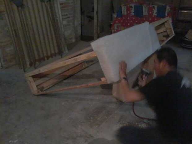 como en la madera tienes que tamaño y como el mismo tamaño de la estructura y ellos utilizan la grapadora de aire. Si no tienes cualquier grapadora de aire utilizan una cabeza de pizca de clavos pequeños y dejar un lil de la uña y roto de estructura.