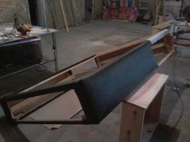 esta cama de perro es un proyecto relativamente fácil, pero recompensará su mascota con una cama de perro realmente fino.La mayor parte de la cama se hace de una vieja silla vintage.  Primero desmontar la silla, quitando la parte trasera y delantera.
