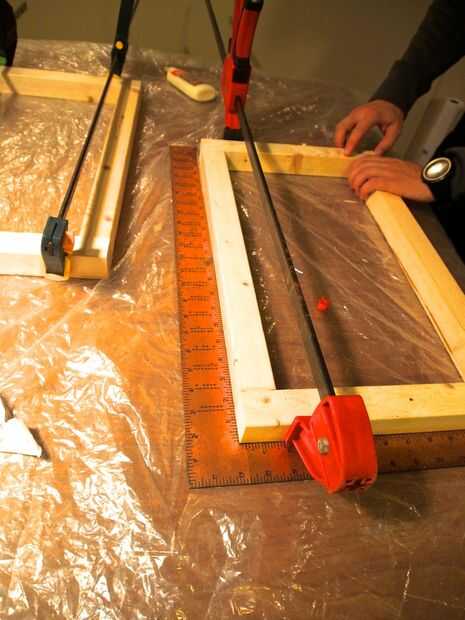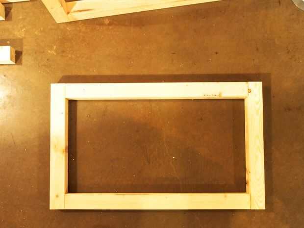 - Se utilizó 2 x 2 y cortar a la medida con la sierra ingletadora. Las dimensiones son: 12 3/8 "x 21 1/4". Cortamos 2 postes de 12 3/8" y 2 de 18 1/4" para cada fotograma.