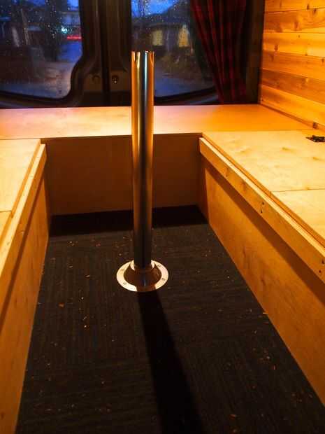 Para hacer la tabla de una mesa, instalamos el segundo monte de pierna en la parte superior del piso de la plataforma. Nos lo coloca de modo que era un poco más atrás, para dejar algo de espacio en la parte delantera para subirse a la plataforma y tomar asiento. Como para asegurar el montaje a la mesa, usamos el taladro para fijar al piso. Esto es todo! Tah dah!! Ahora, podemos instalar la pierna y la mesa siempre que queremos comer o pasar el rato!