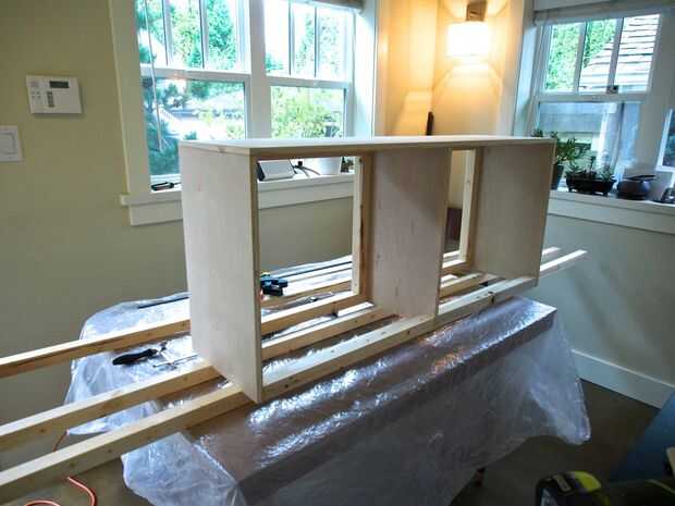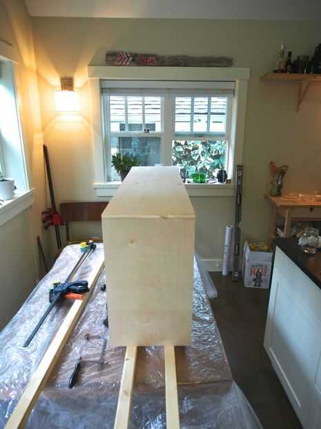 Una vez los travesaños de soporte superior seco y acabado, aquí el siguiente paso fue añadir el panel frontal (dimensiones 47 1/2 "x 12 3/8")