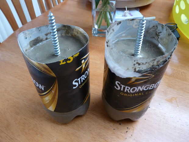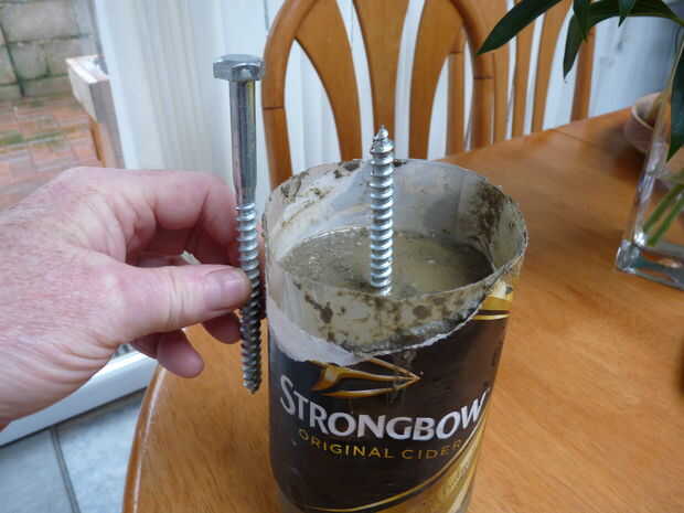 Una vez suficientemente establecido en permitir inserción de tornillo rosca madera grande en suave pero la mezcla de cemento firme, presione cemento firmemente alrededor perno insertado y ojo hasta que está parado vertical y permiten establecer para alrededor de una semana hasta muy sólido.