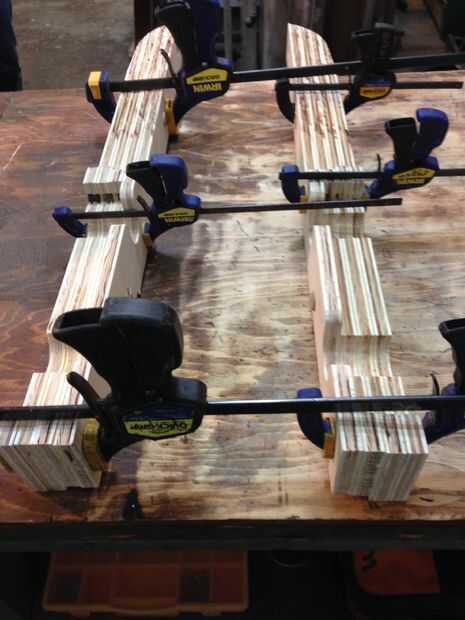 Durante el pegado, reemplacé los split-tacos perforados que había utilizado para mantener los conjuntos de abrazadera juntos durante las primeras etapas con recién tacos de partida en el que he insertado de cuñas de madera. El resultado era estéticamente agradable, pero también requiere de ningún hardware adicional.