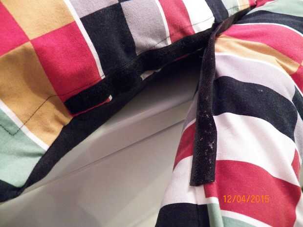 Sólo alinear las tiras de Velcro en el collarín con las tiras de la cubierta de la almohadilla y coloque. Ahora tienes una cama para una princesa (o Príncipe).
