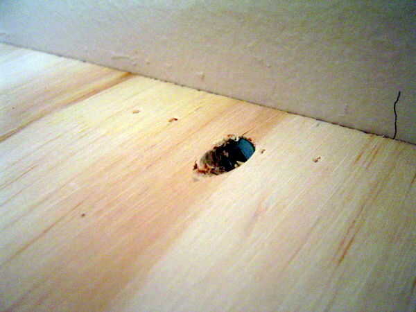 Su base de la cama debería ver algo como la imagen de abajo. Es muy ligero y no tiene ningún refuerzo para hablar de, por lo que tendrás que atornillar a la pared. Si no se balancea como un loco y probablemente terminarás fallando. Manejé unos tornillos a 45 grados a través de la madera contrachapada y algunas vigas de la pared.