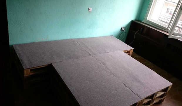 Ahora todo lo que tienes que hacer es poner los azulejos de la alfombra en la parte superior, por lo que parece mejor que simplemente madera ol '. O usted podría experimentar con otras telas, materiales o simplemente pintura.