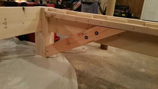 Si voy a construir una cama, quiero hacerlo bien. No quería sólo tornillo en algunos apoyos que inconclusa o no profesional, así que necesitaba un diseño que se adaptan el estilo. Colocó en un lado del poste en el interior del riel de montaje, y el otro extremo perno en la cara del post, como se muestra en la primera foto.