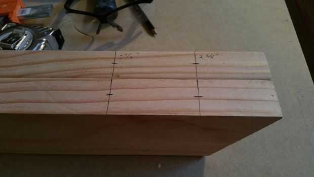 Una vez que tenga la línea en 2-5/8", también colocar una marca de intersección que uno en 3/4" (la mitad del espesor de junta).