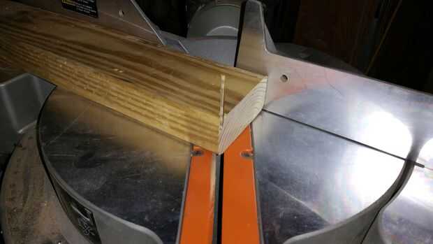 A continuación, configurar la sierra para 60 grados. Usted necesita para asegurarse de que los ángulos son perpendiculares entre sí, no paralelas (como se ve en la foto). Al igual que antes, alinee la sierra para que la hoja se cruza con la esquina de la Junta y corte. *** Importante: tal y como antes, esto no debe hacer la Junta cualquier menor! ***