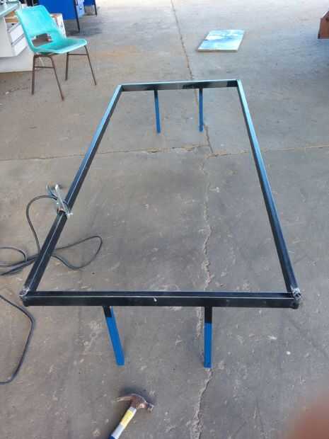 Marco de la cama entonces fue montado en el suelo y cada uno de los pasadores insertados y soldadas en su posición.