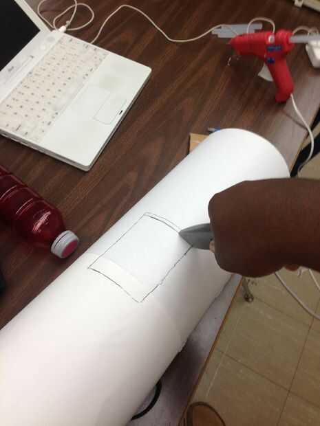Con el cúter, cortar 2 orificios lo suficientemente grandes para un ave y nido, si necesita ayuda pregunte a un padre o alguien que sabe cómo utilizar cuchillas.