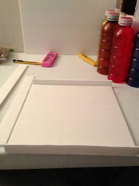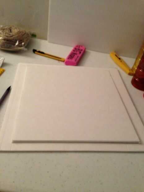 a continuación, tomar su tablero de la espuma y mide la botella así que usted sabrá cuánto necesita para que las botellas pueden caber. Deslice hacia abajo el tubo para que se ajuste sobre las botellas Asegúrese de cortar un conjunto en el tablero para que pueda moverse hacia abajo. Cortar la forma de la caja y y cortar las esquinas de modo que usted puede pegar en.