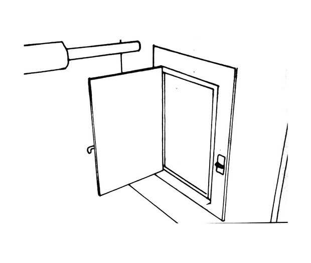 Usted tendrá que hacer una pequeña puerta con cerradura en la parte posterior de la caja. Más tarde será su visor. No necesita ser grande. Alrededor de 8 x 12 cm (3.1x4.7 pulgadas) es suficiente. Partes de la puerta necesitan ser cortado y reemplazada con cristal rojo, plexiglás o plástico rojo simple. Esto permitirá que la luz roja en la caja que no daña el papel fotográfico. Esta luz es necesaria para que más tarde comprobar el proceso de desarrollo a través del orificio del ojo.