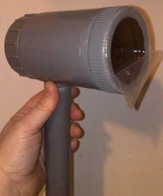 Hacer un agujero en el tubo grande y fijar con glu dentro poco.