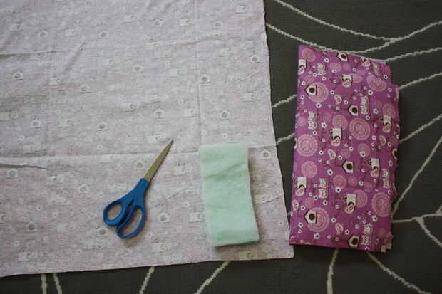 2. Asegúrese de que el lado no-patrón quede frente a usted y dobla a la tela por la mitad correspondiente a la longitud de su espuma.