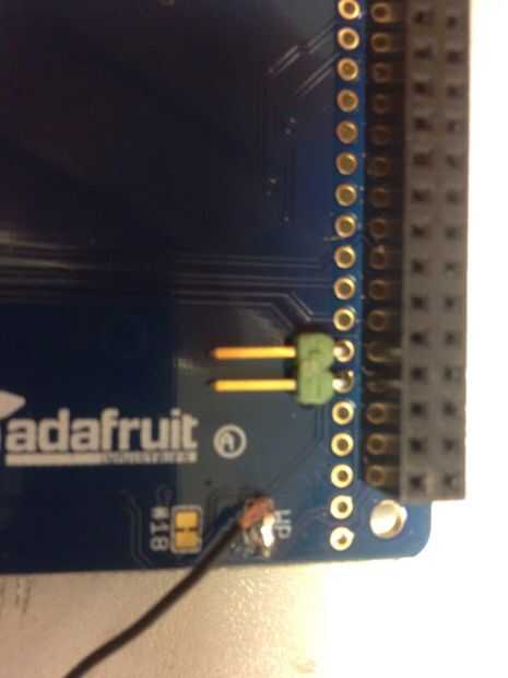 Primero tenemos que soldar el encabezado de ángulo recto a la pantalla TFT. Usted notará el breakout GPIO en la parte superior de la pantalla. Localizar número de pin 17 y Solde un solo ángulo recto encabezado en este pin, por lo hace el pin disponible en la parte inferior de la pantalla. Hemos soldado en dos alfileres de cabecera (como se ve en la foto) pero no es necesario.