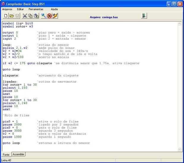 pin0 = 0 ' coloca nível baixo ningún pino cero, desativando os motores