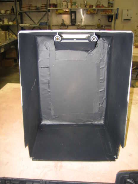 Crear una "placa" trasera de cartón pluma, cartón u o madera. He utilizado cartón pluma porque es fácil de cortar y dar forma. Básicamente cortar el cartón pluma para que cubra toda la parte trasera del interior del Mac.