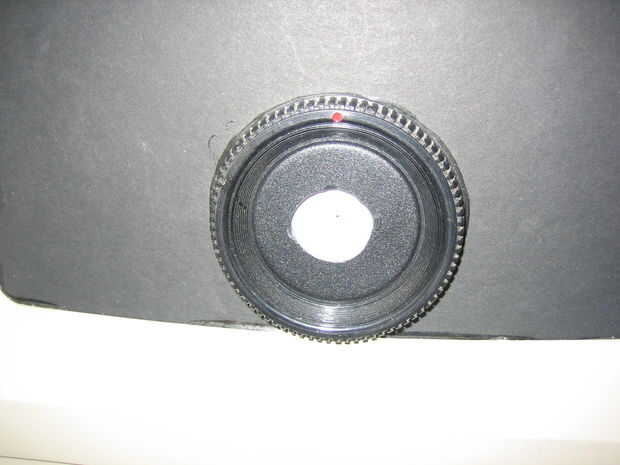 También crear una tapa (cubierta) para usar como una persiana. Sólo usé un trozo circular de matteboard y alguna cinta de enmascarar azul.
