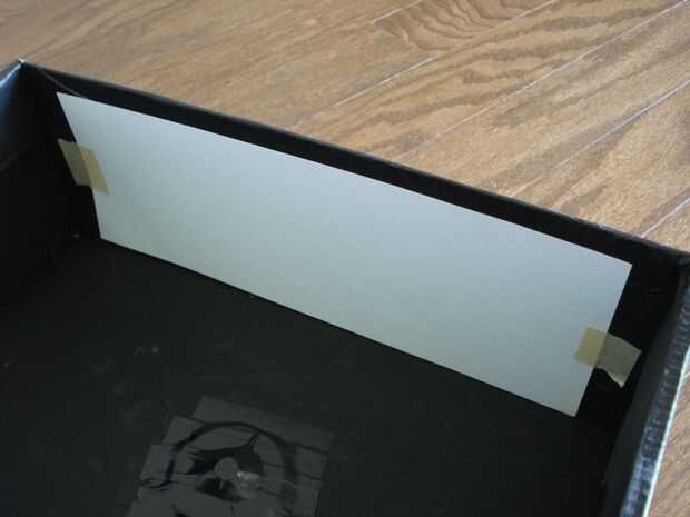 Ahora tu cámara de caja de zapatos es completa y su listo para probarlo. Antes de cargar la cámara Asegúrese de tapar el agujero con un trozo de cinta aislante. Es un fácil de quitar y reemplazar el obturador. En un cuarto oscuro, cortan un pedazo de papel fotográfico en medio por lo que cabe en la pared posterior de la caja. Cinta adhesiva en su lugar, asegurándose de que queda plano contra el lado. Cerca de su caja y su listo para disparar.