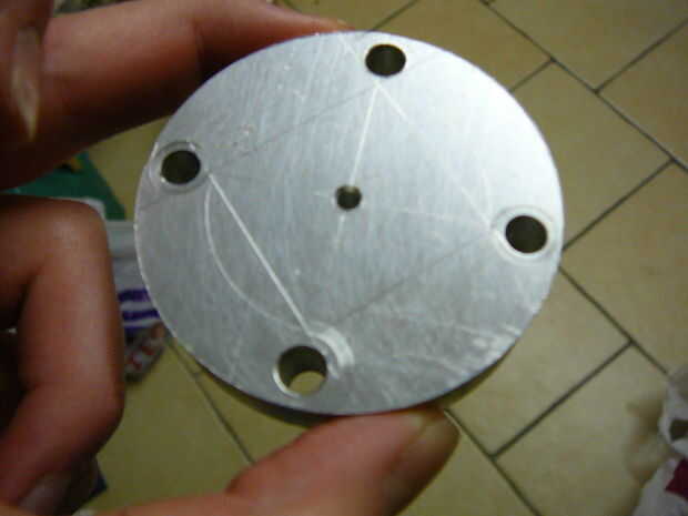 Comencé con una placa de aluminio de 13mm con 2mm y 3mm para extruir. De éstos el agujero 3 mm dio mejores resultados. Descubrí que cuando se puso un gran chaflán en el lado en el agujero.