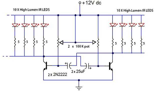El concepto es simple. Fue probado que la luz IR puede afectar cámara digital. Si es suficientemente intenso, puede enmascarar una escena entera. Basándonos en esto, he utilizado un transistor 2 vibrador multi flasher. Esto fue cosechado de uno del ratón cobarde que estaba roto.