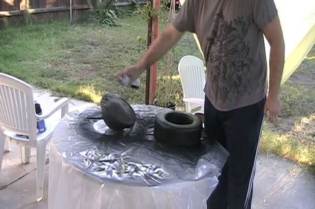 Ya cubrí mi prop toda con yeso soy capaz de pintar con pintura de spray normal, pero si cualquiera de la espuma de poliestireno es visible a través de usted necesita usar agua pintura látex base, o casa de látex regular pintura. Después de hacer una capa base de pintura de látex puede usar spray normal después.