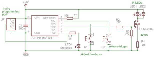 He comprobado la resistencia R1 que 30 ohmnios así que 40mA de flujos actuales a través de los LEDs. Dependiendo de su LED puede utilizar una resistencia más pequeña o más grande.