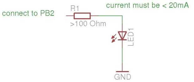 Entonces usted necesita comprobar la resistencia para limitar la corriente por debajo de 20 mA, ya que es el máximo de lo que el microcontrolador puede ofrecer. En este caso, R1, R2 y R3, LED 1 y 2 y el IRLML2502 son sustituidos por los esquemas de imagen segunda.