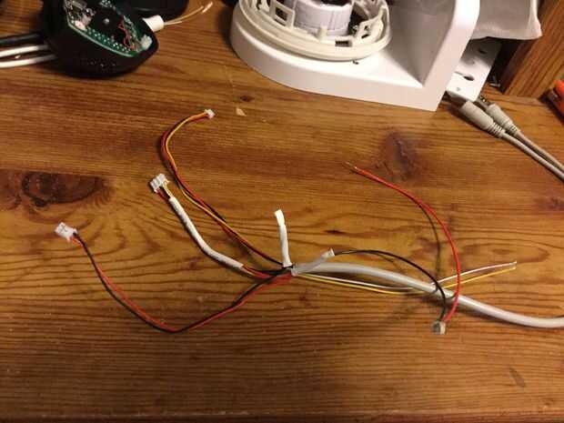 Desconecte el cable de la cámara y tendremos que cortar los cables de alimentación (negro y rojo) enchufe en la placa lógica de IR como lejos del enchufe como usted puede, esto debe salir lo suficientemente flojo como para permitir que la cámara gire de lado a lado sin dañar los cables. No corte los cables a la placa lógica de la cámara.