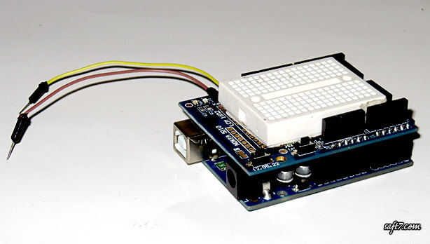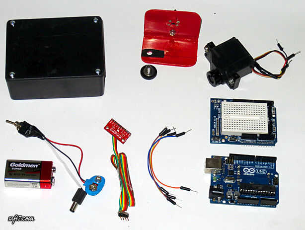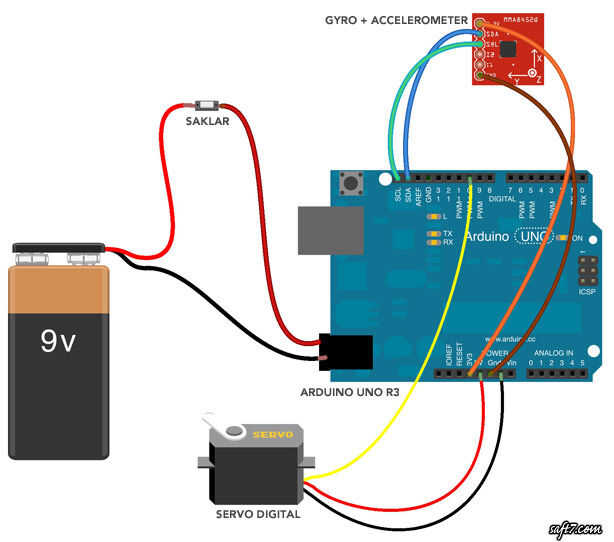 En este artículo, el módulo es Triple Eje acelerómetro y giróscopo Breakout – MPU-6050, que tiene giroscopio de 3 ejes y acelerómetro de 3 ejes en un chip, suministrado por la alimentación de 3.3 voltios.