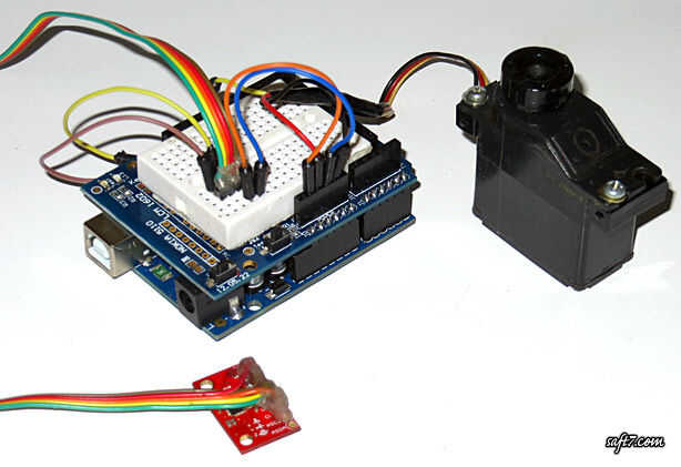 Servo controlado por Arduino, con giroscopio y acelerómetro como referencia del movimiento.