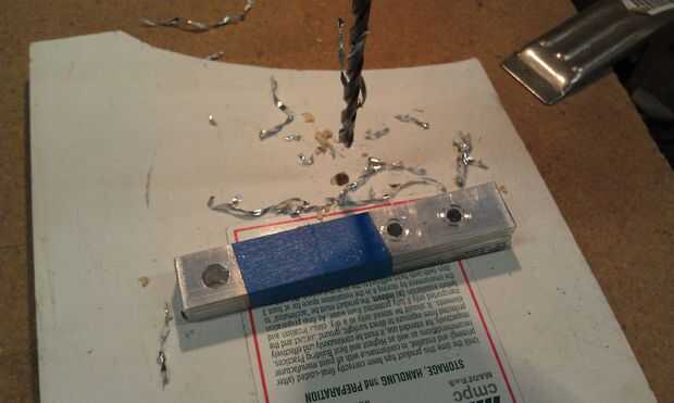 Dos agujeros más pequeños para el #10 x 2 1/2" tornillos de fijación de los soportes para el cuerpo y un agujero de 5/16" en la parte superior para el perno de eje de 5/16 "x 2 1/2" de la máquina.