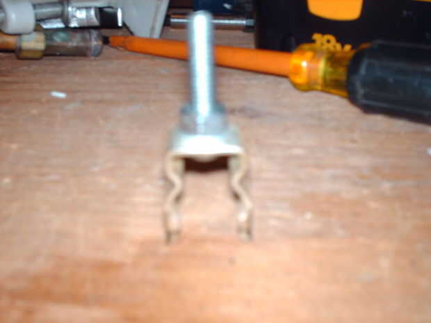 Agrandar agujero si es necesario. El agujero en la parte inferior de mi clip no era lo suficientemente grande para el tornillo, así que hice más grande. Otros clips similares que tengo tienen agujeros lo suficientemente grandes, pero los clips son demasiado grandes para el manillar de mi bici.