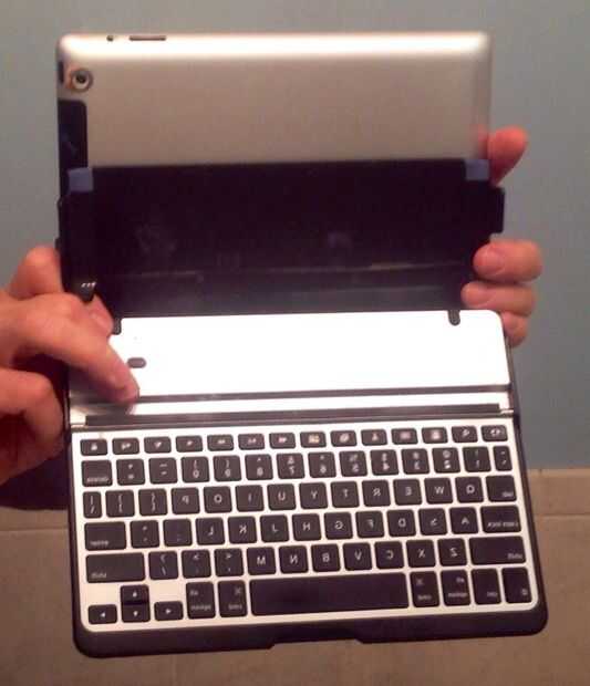 Caso de teclado Zagg el puesto depende el iPad deslizando suavemente en él, tuve un pequeño problema, ya que el anillo ahora sobresale de la caja. Me di cuenta que el iPad funciona bien cuando Deslice hacia abajo en el caso de Zagg, con el objetivo