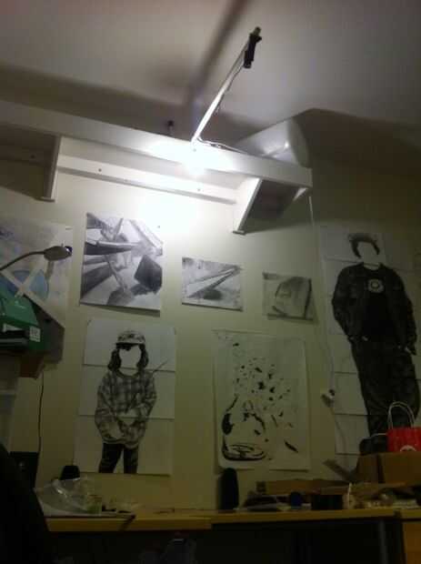 Porque somos ingenieros y solución de problemas es lo que hacemos, mi amigo Silas Hughes ya había diseñado y construido un montaje super sencillo para mi webcam y arriba la luz.